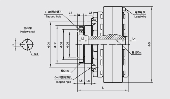 FL-K型(法蘭盤輸入、空心軸輸出、止口支撐)磁粉離合器
