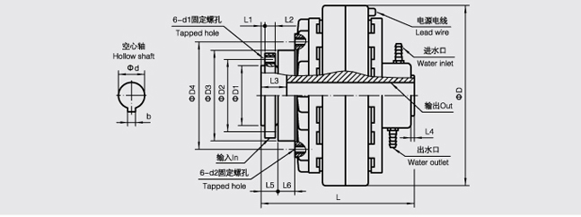 FL-K/Y型( 法蘭輸入、空心軸輸出、止口支撐、水冷卻)磁粉離合器