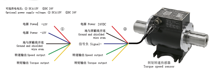 · The frequency signal output by the torque sensor is sent to the frequency meter or digital meter to read directly the frequency signal or voltage and current signal proportional to the torque.