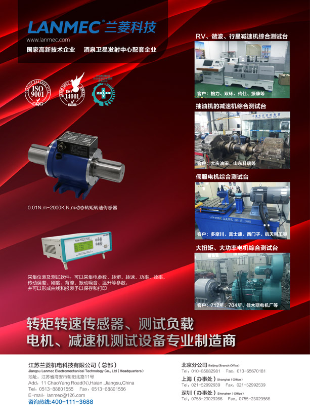 蘭菱科技 起源于1974年,是集測功機(jī)、轉(zhuǎn)矩轉(zhuǎn)速傳感器、模擬負(fù)載的研發(fā)、檢測、生產(chǎn)于一體的高新技術(shù)企業(yè),在深圳、上海、北京、沈陽、成都均設(shè)有辦事處。