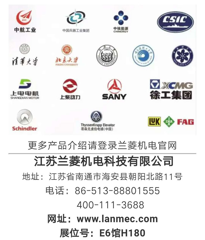 | 2018上海電機展(2018.06.13-06.15)在上海新國際博覽中心舉行,我司展號位為: E6館 H180,歡迎新老客戶蒞臨指導! 蘭菱科技 一 扭矩傳感器、電機測試臺、執(zhí)行器測試臺、減速機測試臺品牌制造企業(yè)。 集團總部: 江蘇海安 售后保障: 江蘇、上海、北京、深圳 聯(lián)系人:顧聳智 13962700160